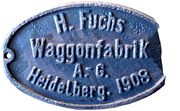 | 16:00, 8. Okt. 2018 | Schild Fuchs Waggonfabrik.jpg (Datei) | 1,59 MB | == Beschreibung == {{Bildbeschreibung|Fotografie eines Waggonschildes: H. Fuchs Waggonfabrik A.-G. Heidelberg. 1908 | Eigene Aufnahme | Adrian Yass | 08.10.2018 }} == Lizenz == {{GDFL}} Kategorie:Bild (Heidelberg) Kategorie:Bild (Dfg2) | 1 | |