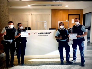 - ↑ Pressemitteilung des Polizeipräsidiums Mannheim vom 16.03.2020: Umsetzung der Allgemeinverfügung der Stadt Mannheim; Sensibilisierungsgespräche mit Betreibern von Gastronomiebetrieben; Kommunaler Ordnungsdienst und Polizei gemeinsam auf Streife. https://www.presseportal.de/blaulicht/pm/14915/4549099