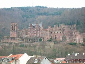 [[Bild:Heidelberger Schloss 2.JPG|thumb|300px|Heidelberger Schloss vom [[Karlsplatz]] aus]] | [[Bild:Heidelberger Schloss 2.JPG|thumb|300px|Heidelberger Schloss vom [[Karlsplatz]] aus]] | ||