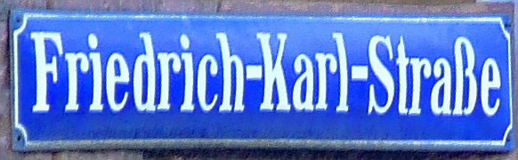 | 13:31, 3. Feb. 2008 | Mannheim Friedrich-Karl-Strasse Schild.jpg (Datei) | 38 KB | {{Bildbeschreibung|Straßenschild der Friedrich-Karl-Straße (Mannheim) |eigene Aufnahme |Rabe |2007-09-30 |- }} {{CC-by-nc-sa-2.5}} Kategorie:Bild (Rabe) Kategorie:Bild (Mannheim) | 1 | |