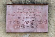 | 20:24, 29. Jul. 2013 | Franz Josef Heisel Gedenktafel Weinheim.JPG (Datei) | 264 KB | {{Bildbeschreibung| Gedenktafel für Franz Josef Heisel (1853 - 1913 ) an der Außenmauer des Großen Schlossparkes beim Schloss Weinheim | selbst |S. Zimmermann | 07.07.2013 }} Kategorie:Bild (Suggs) Kategorie:Bild (Gedenktafel) [… | 1 | |