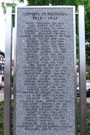 | 20:44, 1. Jun. 2014 | Gefallenendenkmal Rülzheim 07.JPG (Datei) | 535 KB | {{Bildbeschreibung|Rülzheim: Gefallenendenkmal für die Opfer beider Weltkriege | selbst | S. Zimmermann | 31.05.2014 }} Kategorie:Bild (Suggs) Kategorie:Bild (Gefallenendenkmal Rülzheim) == Lizenz == {{CC-by-nc}} | 1 | |