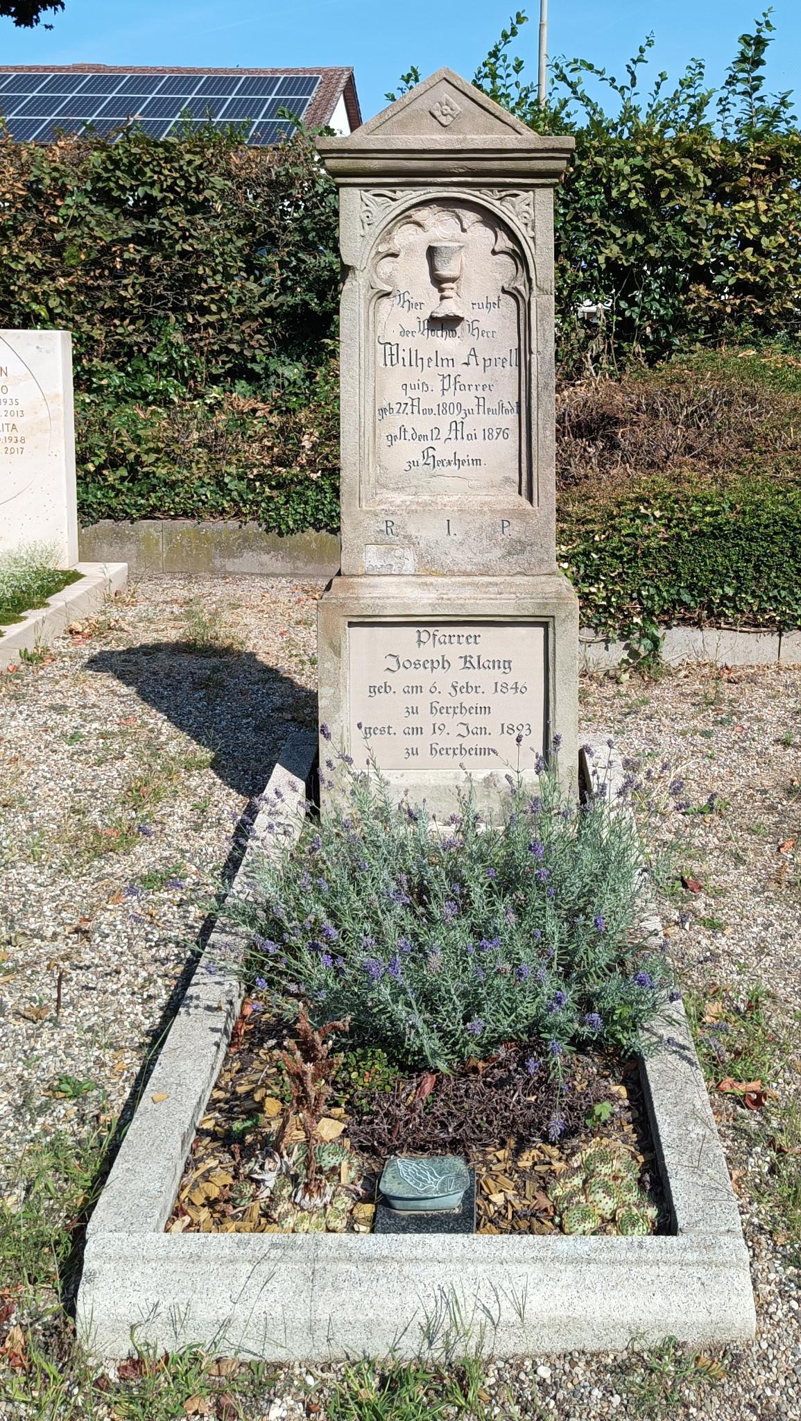 | 07:32, 17. Okt. 2024 | Grab Josef Klang und Wilhelm Aprell Herxheim.jpeg (Datei) | 744 KB | {{Bildbeschreibung|Herxheim (Landau), Grabstein der Pfarrer Wilhelm Aprell (1809-1876) und Josef Klang (1846-1893) auf dem Friedhof | selbst |selbst| 01.09.2024 | }} Kategorie:Bild (OG Herxheim) == Lizenz == {{CC-by-nc-sa-2.5}} | 1 | |