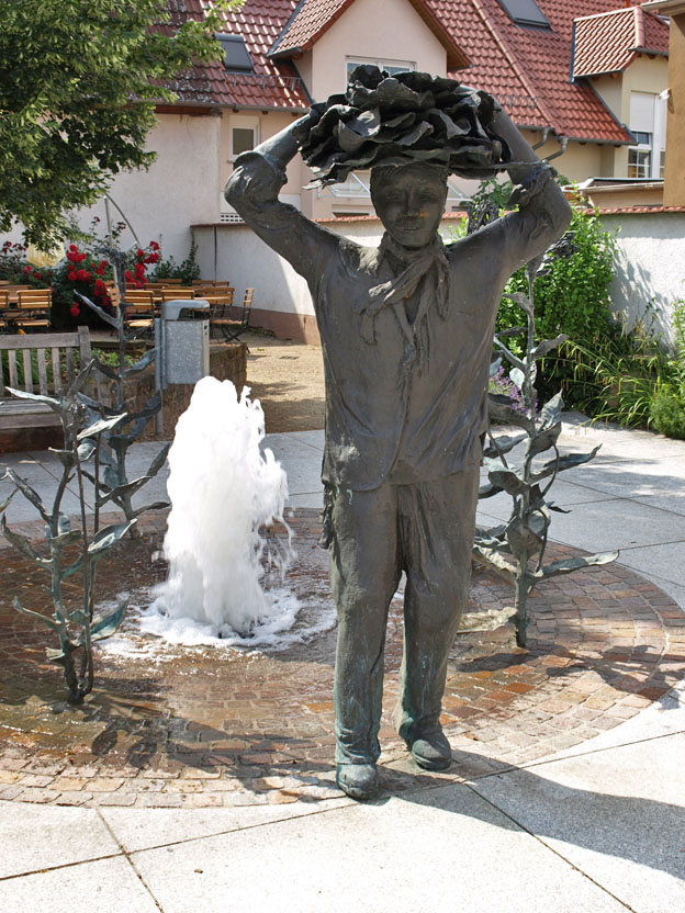 Heddesheim – Der „Tabakbrunnen“ (1997) aus Bronze von Franz Müller-Steinfuhrt.