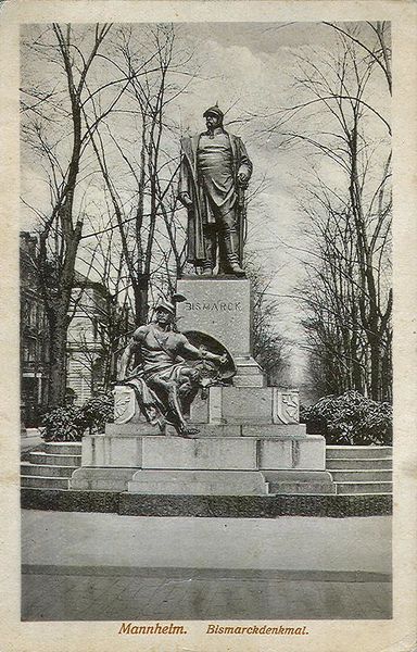- Mannheim: Das Bismarck-Denkmal (bis 1944) nach dem Entwurf von Bildhauer Emil Hundrieser
