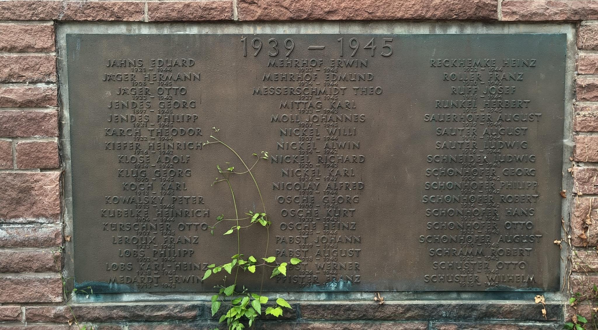 - Gefallenendenkmal für die Opfer beider Weltkriege an der Aussegungshalle Essingen: Tafel für die Gefallenen des Zweiten Weltkriegs