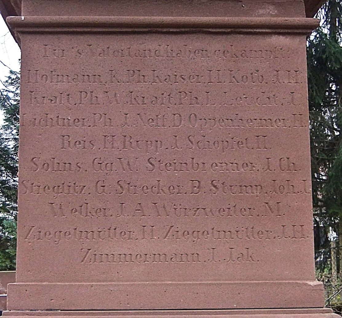 - Hoffenheim: Kombiniertes Krieger- und Gefallenendenkmal auf dem Friedhof: Inschrift oben rechts