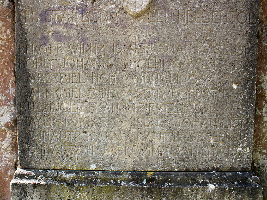 - Gerbersruhpark in Wiesloch – Gefallenendenkmal für die Toten des „Arbeiter Turn u Sport Verein Wiesloch“ im Ersten Weltkrieg (1914–1918). Inschrift, unterer Teil.